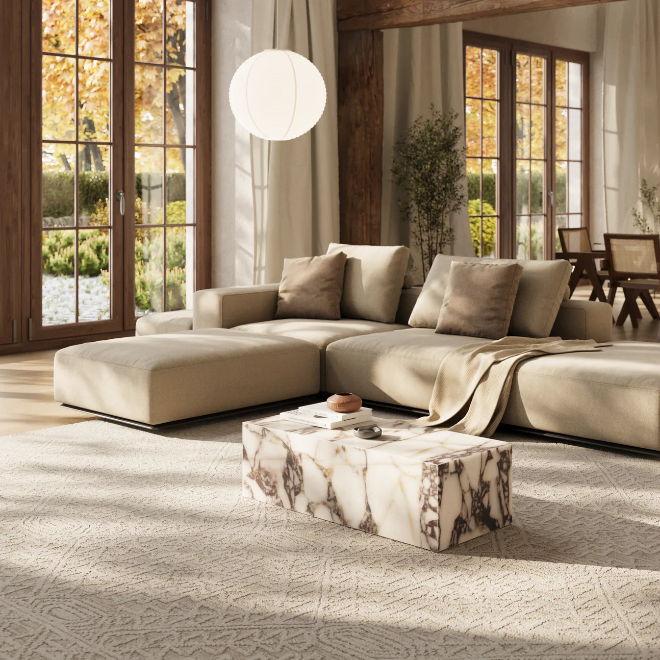 Defined by clean lines and quiet elegance, the Eros Coffee Table is a modern classic. Handcrafted from your choice of Travertine or Marble, each piece is made to order by master artisans, showcasing the raw beauty and individuality of natural stone.