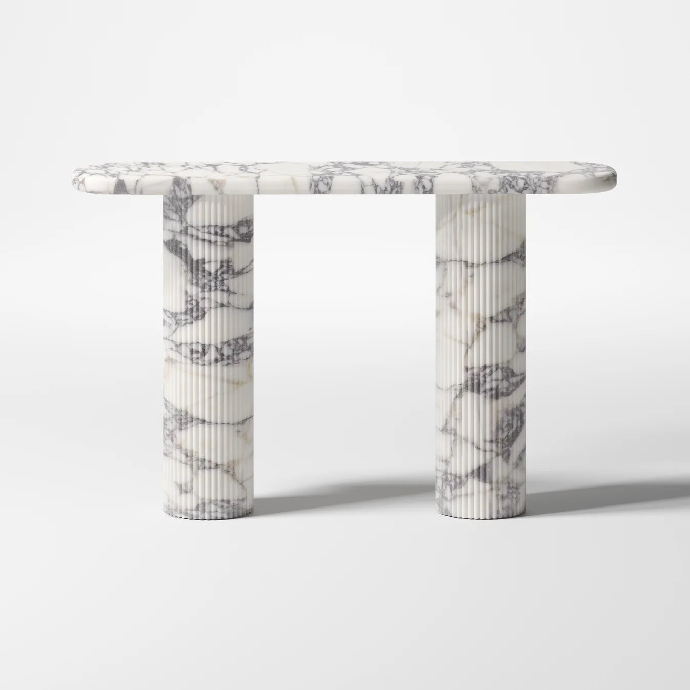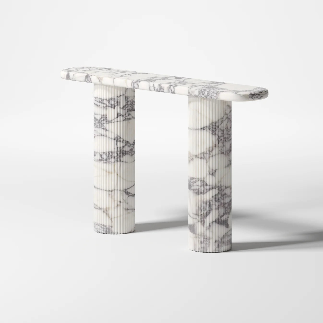 A study in refinement and restraint, the Kaya Console Table brings sculptural elegance to entryways, living spaces, or quiet corridors. With its clean silhouette and refined proportions, Kaya is handcrafted from the finest natural stone—offered in Travertine or Calacatta Viola marble.