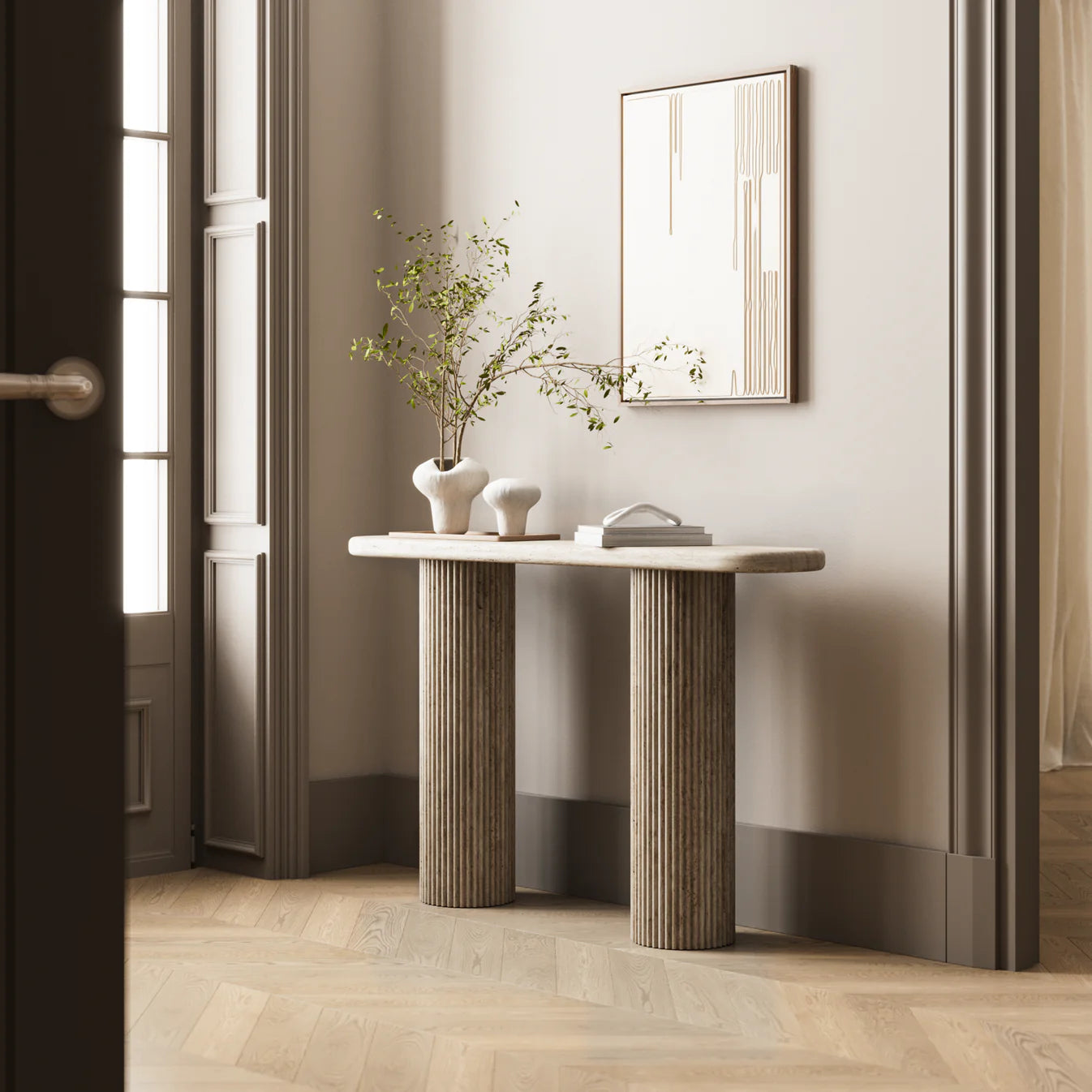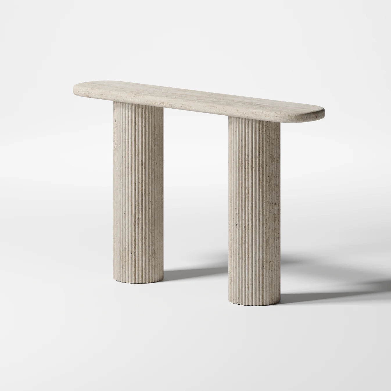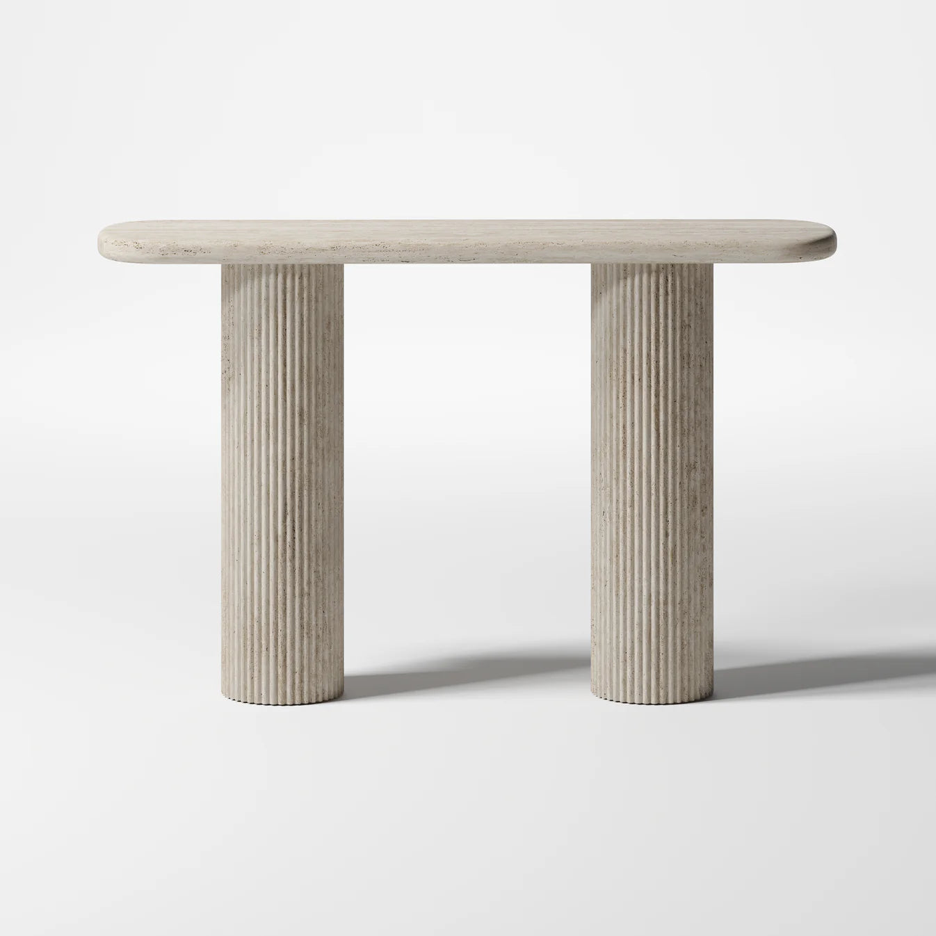 A study in refinement and restraint, the Kaya Console Table brings sculptural elegance to entryways, living spaces, or quiet corridors. With its clean silhouette and refined proportions, Kaya is handcrafted from the finest natural stone—offered in Travertine or Calacatta Viola marble.