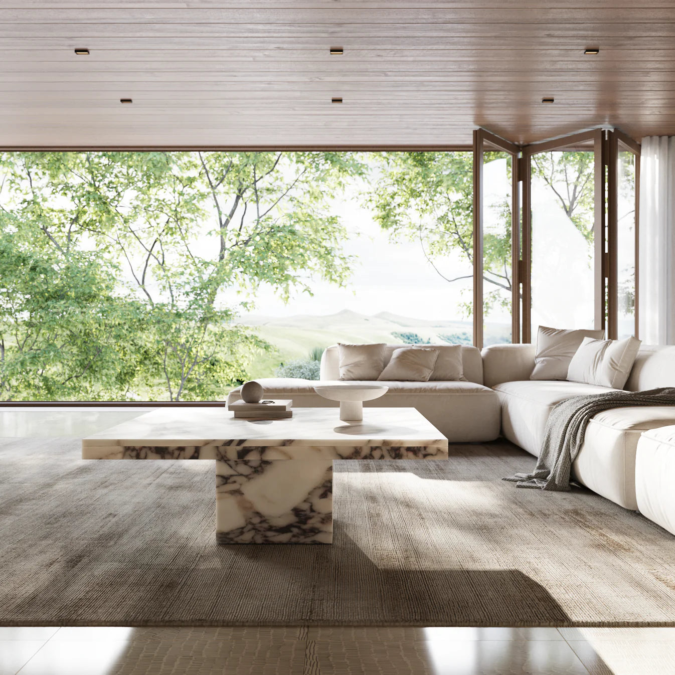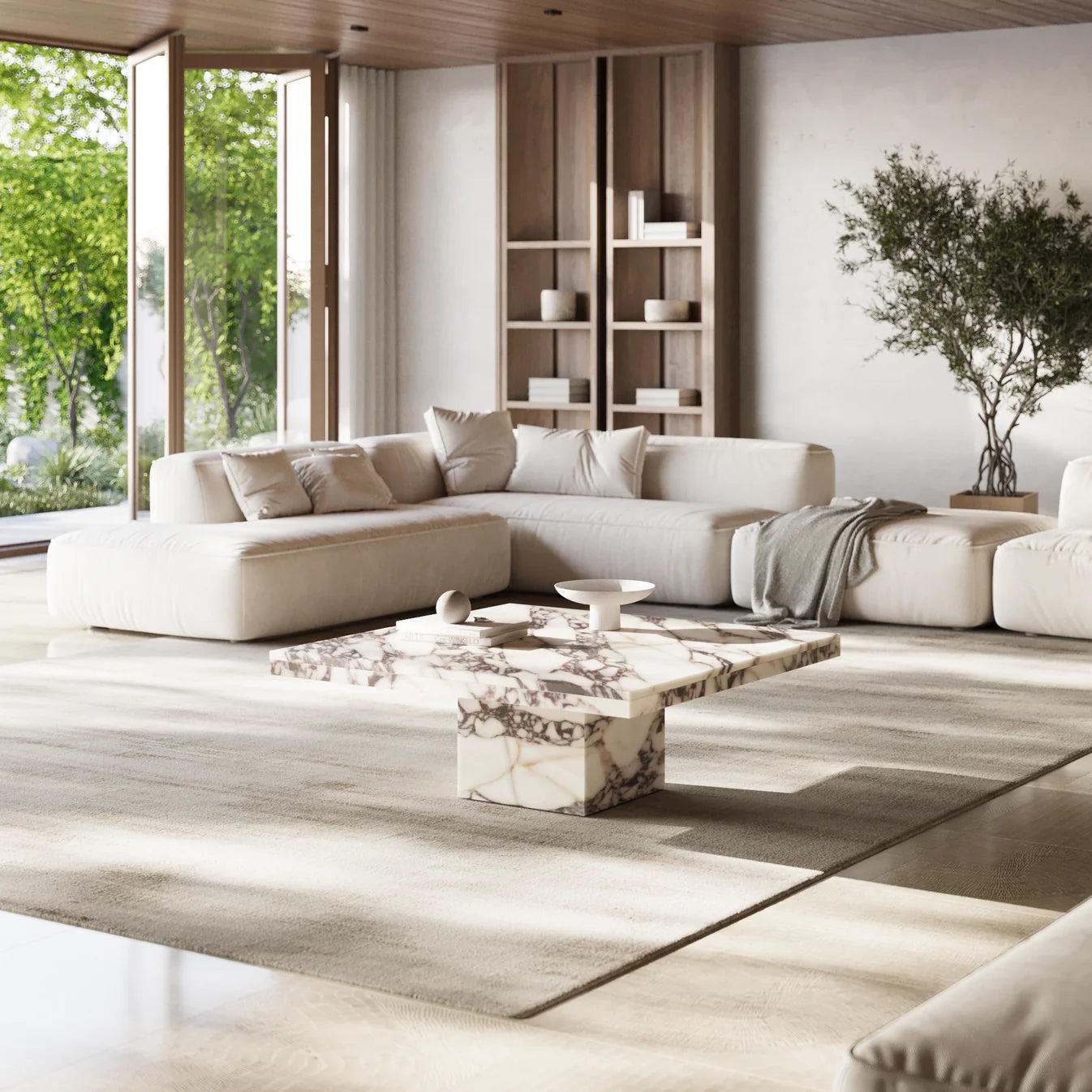 Bold in form, quiet in presence—the Serene Coffee Table is a minimalist statement piece, meticulously crafted from your choice of Travertine or Marble. Its clean silhouette and solid square base create a grounded focal point, radiating composure and refined strength.