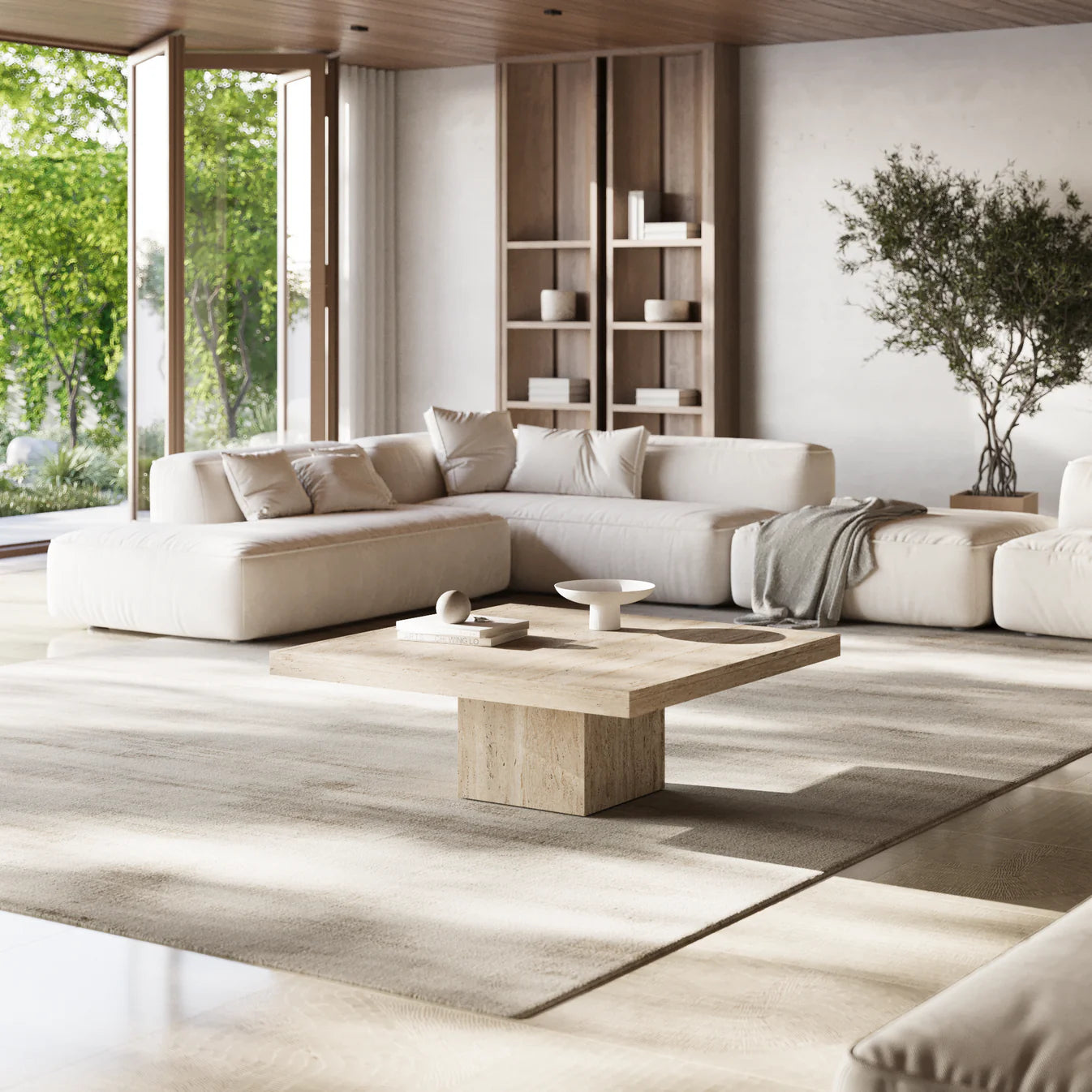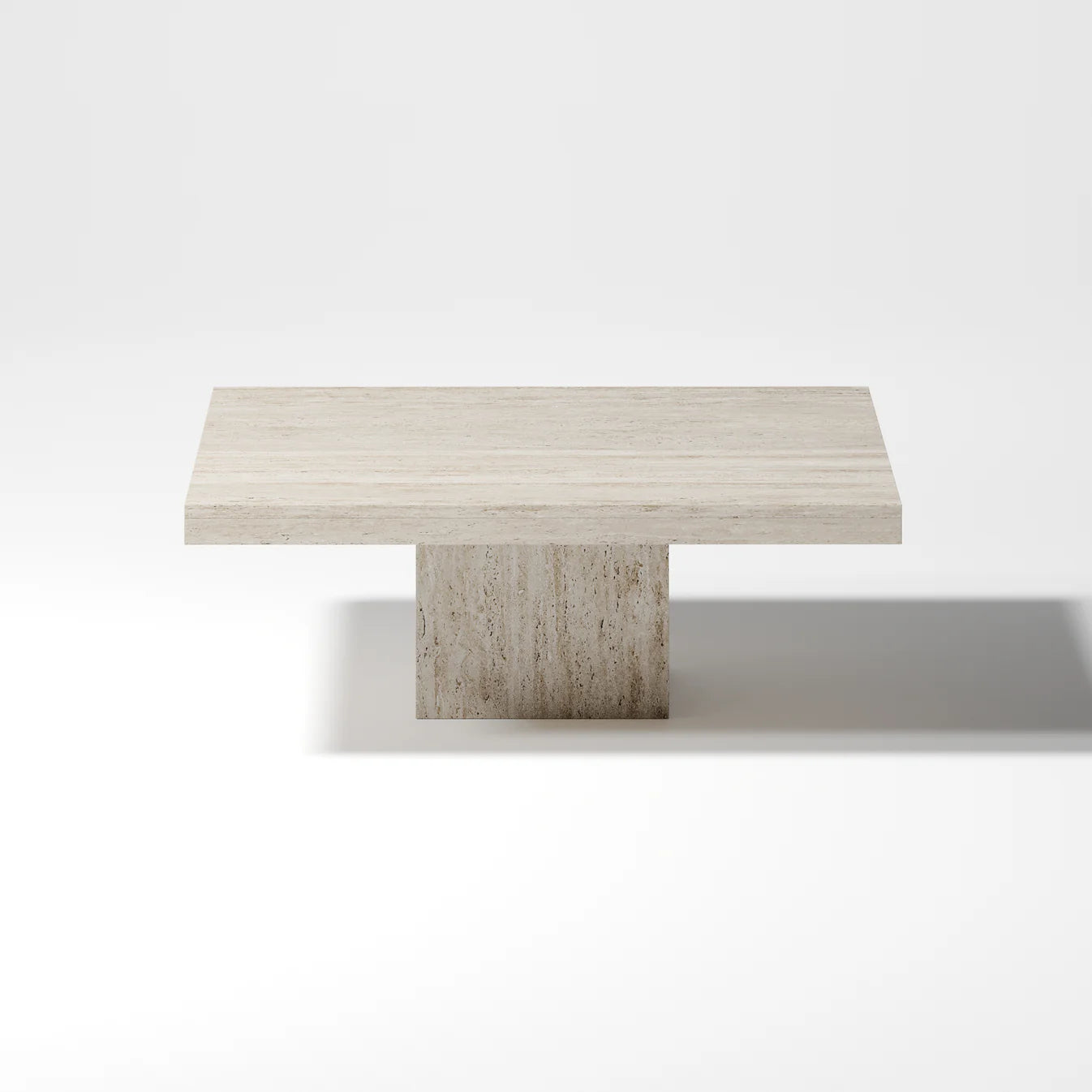Bold in form, quiet in presence—the Serene Coffee Table is a minimalist statement piece, meticulously crafted from your choice of Travertine or Marble. Its clean silhouette and solid square base create a grounded focal point, radiating composure and refined strength.
